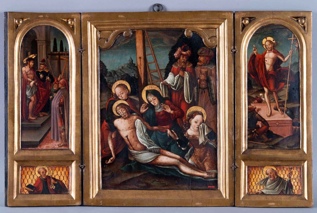 Tríptico con la Lamentación sobre Cristo muerto, entre 1510-1550, oli i daurat sobre fusta