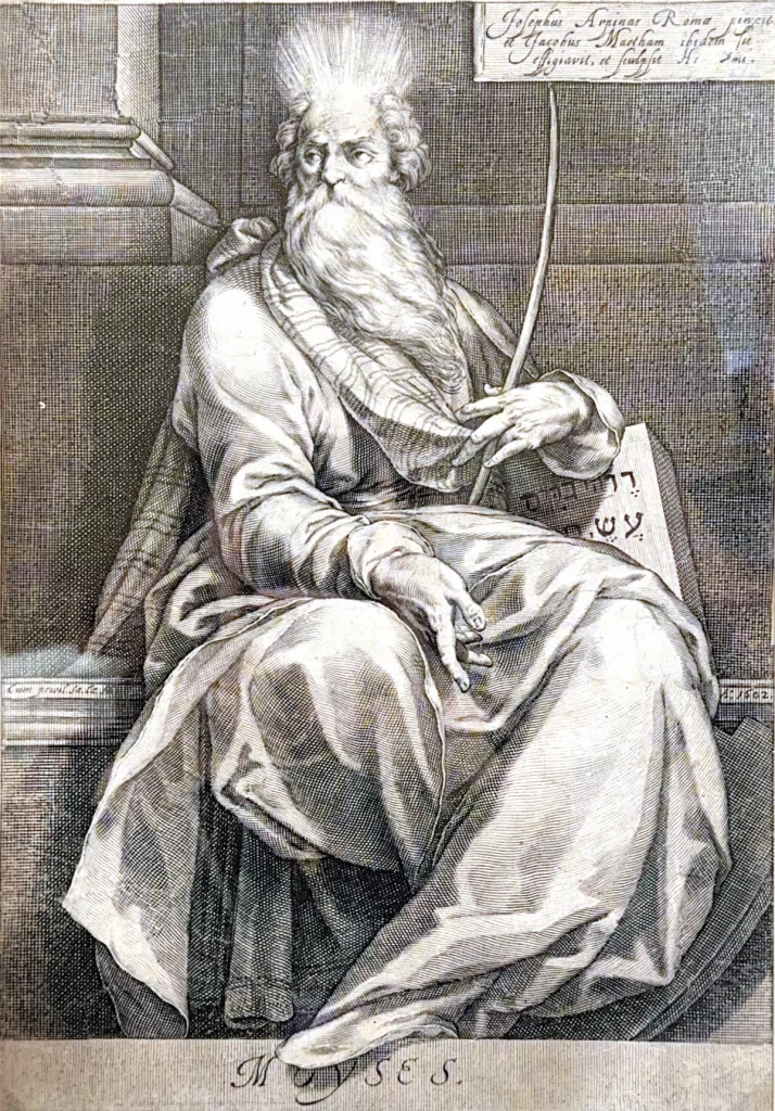 Jacob Matham fue un grabador y dibujante flamenco, activo a finales del siglo XVI y comienzos del XVII. Junto con su padrastro y maestro, Hendrick Goltzius, trabajó en la ciudad de Haarlem realizando grabados a partir de obras de diversos artistas reconocidos. Este Moisés, basado en una pintura del Cavaliere d’Arpino y que recuerda en parte al más famoso de Miguel Ángel, es un buen ejemplo de su maestría.