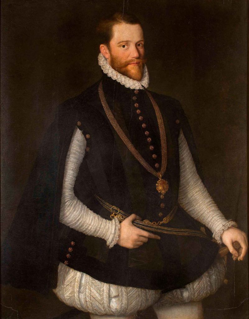 Anthonis Mor, o Antonio Moro (Utrecht, cap al 1517 – Anvers, 1577), fou un pintor i retratista de gran prestigi a Europa. En l’àmbit de la cort dels Àustries sabem que va retratar, entre d’altres, Carles V, el 1552; Maria Tudor, el 1554, i Felip II, el 1560. Desconeixem la identitat de l’home retratat en aquesta magnífica pintura, però sabem que pertanyia a l’orde de Sant Jaume pel collar amb la creu que llueix. Es tracta d’un home en plena maduresa, amb un posat i una mirada que denoten una gran seguretat, refermada per la posició de les mans, al cinturó i a l’empunyadura de l’espasa.